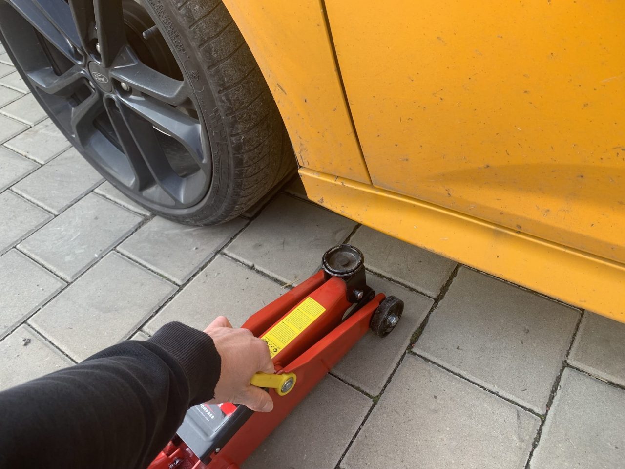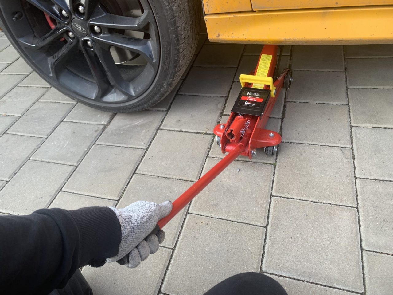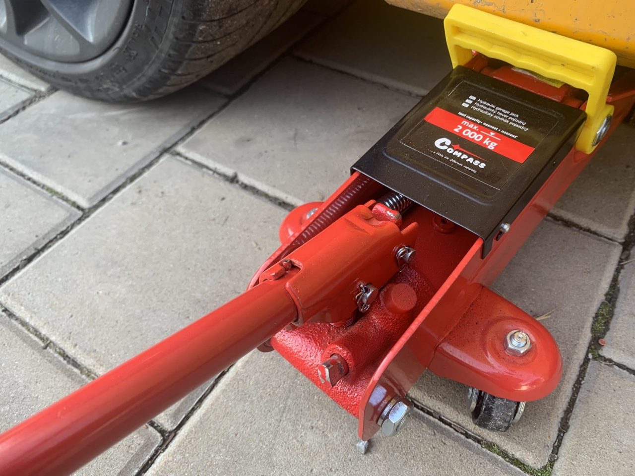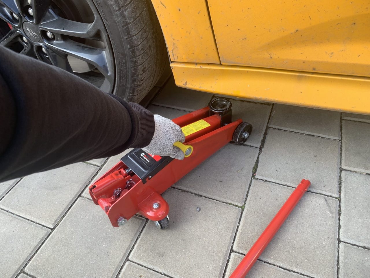 Jakmile s heverem pod vozidlo najedete, vezměte tyč a po směru hodinových ručiček s ním utáhněte závit. Tím zajistíte, že se rameno heveru bude při pumpování správně zvedat. Následně je nutné, abyste kulaté zakončení heveru pootočili tak, aby se zvedacích bodů dotýkala vyříznutá místa (nikoliv ta vyvýšená). Po dvojité kontrole závitu a správného umístění heveru už jen stačí, abyste nasadili tyč a začali pumpovat. Pumpujte pomalu a v klidu. Postupně sledujte, jak se auto zvedá, a jakmile uvidíte, že se kolo nachází ve vzduchu, tak pumpovat přestaňte – stačí, aby bylo ve vzduchu pár milimetrů. Následně pumpovací tyč opět vytáhněte, aby se nestalo, že o ní omylem zakopnete.