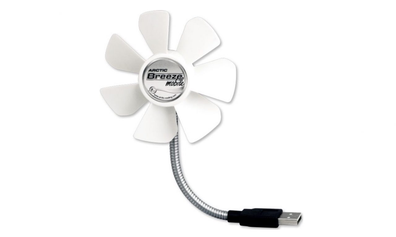 Pro uživatele notebooků a cestovatele je ideálním společníkem mini větráček Arctic Cooling Breeze Mobile – USB fan. Jak už jeho název napovídá, jedná se o mobilní ventilátor, který lze jednoduše přenášet. Samotná vrtule má pouze 9 cm a následně pokračuje krátkým, avšak ohebným ramenem rovnou do USB konektoru.