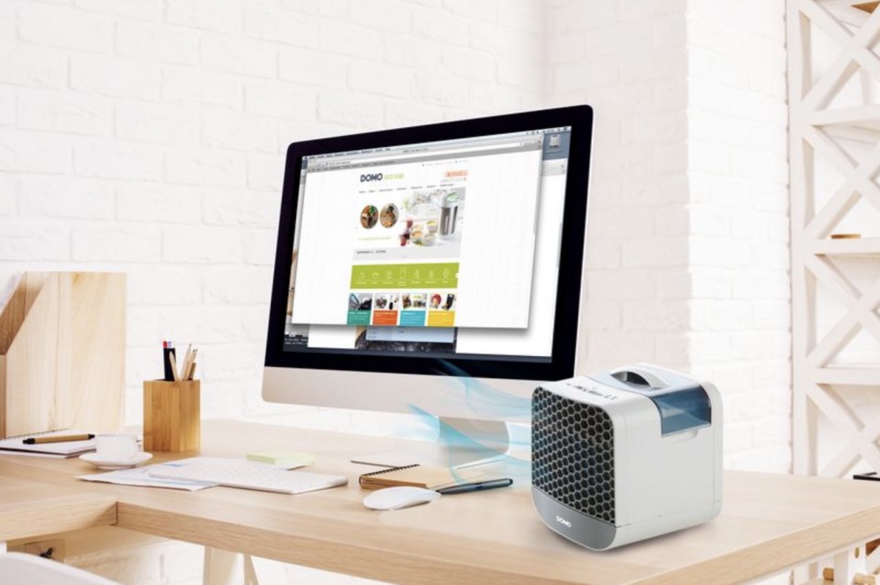 Levnější alternativou mobilní klimatizace je například ochlazovač vzduchu DOMO DO154A. Díky kompaktním rozměrům ho můžete umístit rovnou na stůl a nasměrovat přímo na vás. Funguje jako ventilátor, přičemž hnaný vzduch je nadále ochlazen a zvlhčen studenou vodou ze zásobníku. Tento model nabízí dvě rychlosti foukání, zásobník na vodu o objemu 0,75 litru, rychlost vzduchu 2,5 metru za sekundu a nechybí mu ani omyvatelný vodní filtr. Hodí se například i do kanceláře, ale vzhledem k rozměrům byste od něj neměli očekávat zázraky. S ochlazením celé místnosti si rozhodně neporadí.