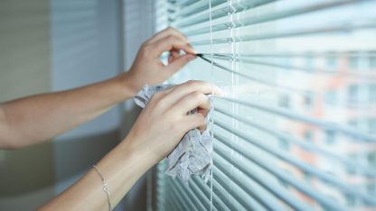 Robotické čističe ani aku vysavače si neporadí s rámy. Na jejich umytí budete stále potřebovat kyblík s vodou a hadřík. Usnadnit si však můžete umývání žaluzií. Rychleji vám to půjde, když si pořídíte praktický čistič žaluzií, díky kterému očistíte několik lamel najednou.