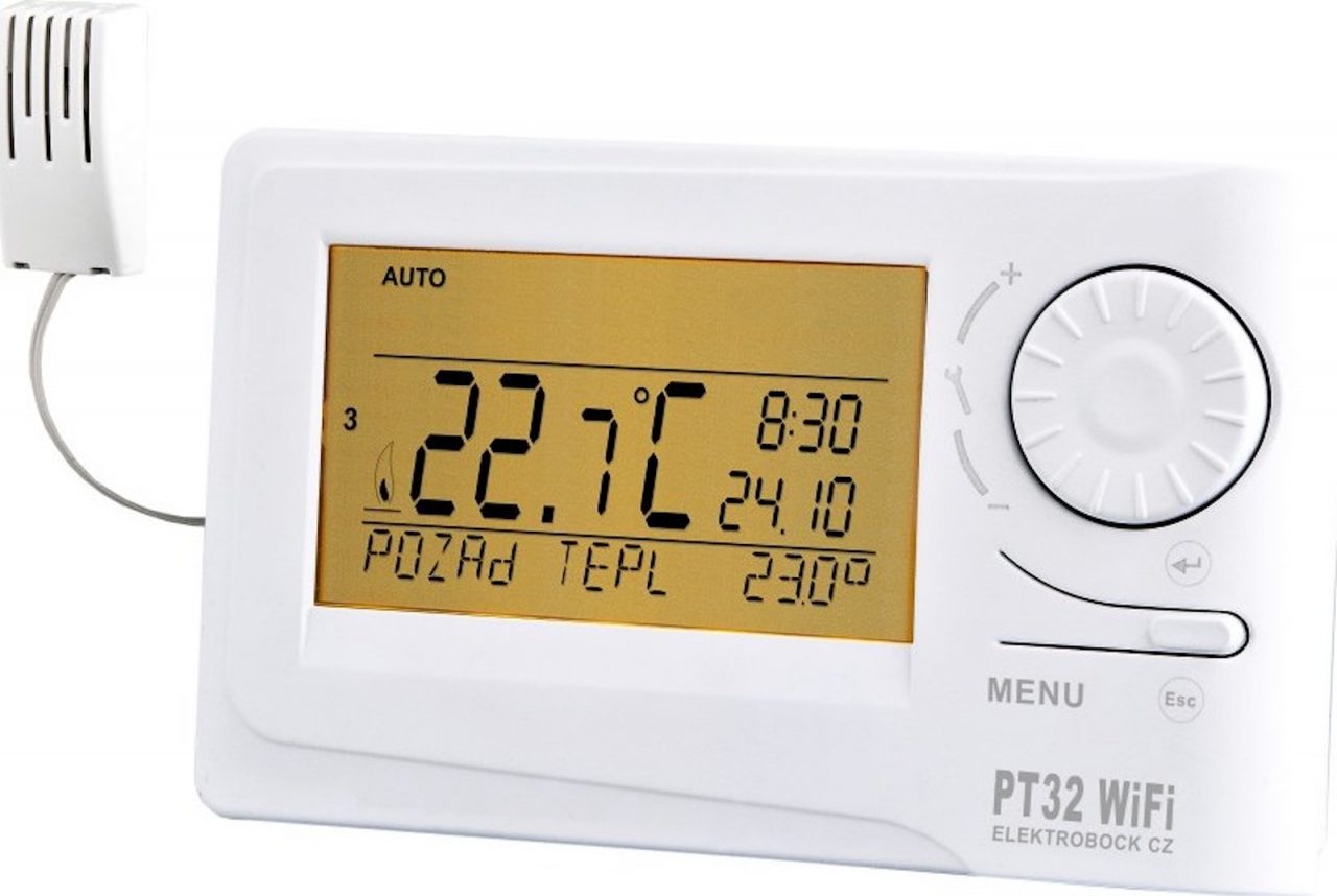 Elektrobock PT32 WiFi kombinuje vzhled a ovládání klasického termostatu s možností vzdálené správy pomocí mobilní aplikace. Neočekávejte ovšem pokročilá nastavení profilů vytápění nebo integraci do chytré domácnosti.