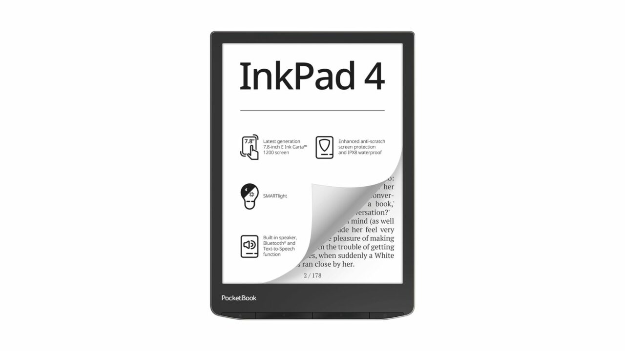 Hledáte-li pokročilejší čtečku s větším displejem, je PocketBook Inkpad 4 naprosto ideální. Výrobce jí osadil 7,8” obrazovkou s rozlišením 1404 x 1872 pixelů, zobrazovaný obsah je tak velmi ostrý. Čtečka navíc disponuje funkcí SMARTlight pro nastavení úrovně teploty barvy podsvícení displeje, díky čemuž je tak čtení příjemné za každé denní doby. Navíc se nemusíte bát vzít přístroj k vodě, jelikož disponuje stupněm krytí IPX8. Samozřejmostí je pak podpora všech hlavních formátů elektronických knih, zamrzí naopak chybějící podpora paměťových karet. Také je třeba počítat s vyšší pořizovací cenou.