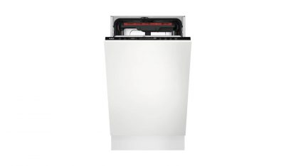 Díky šířce 44,8 cm lehce zapadne do malé kuchyně i jednopokojového bytu. Ač se jedná o zúžený model, dokáže se na jeden mycí cyklus postarat až o 11 sad nádobí. Vnitřní uspořádání myčky tvoří set košů, které jsou doplněny praktickými sklopnými držáky. V případě potřeby lze horní koš polohovat do tří úrovní. Samozřejmě nechybí ani příborová zásuvka s šířkou po celé myčce. Velkým plusem je i vnitřní osvětlení, které vám usnadní orientaci uvnitř spotřebiče.