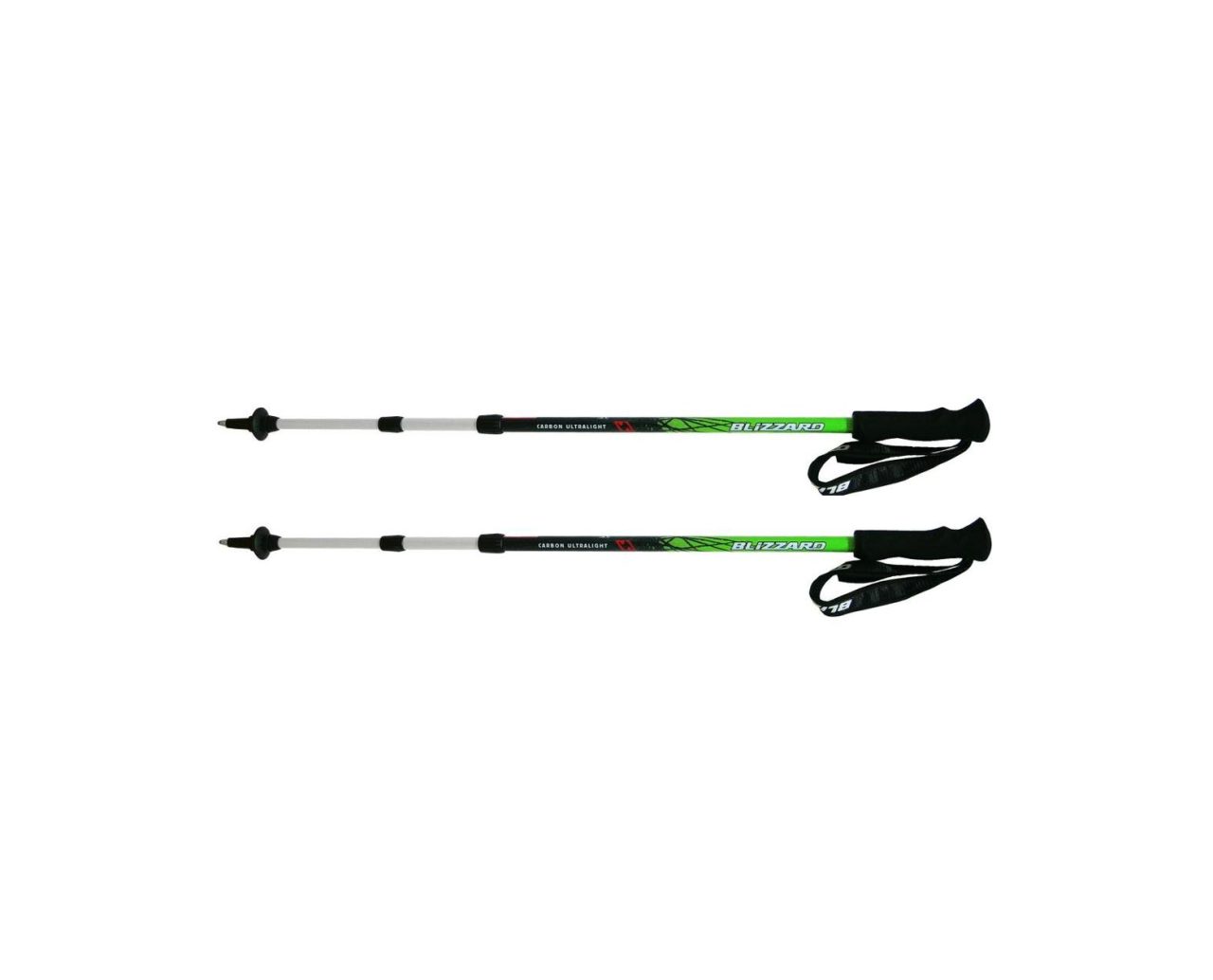 Třídílné trekové hole Blizzard Carbon Ultralight jsou vyrobeny z kvalitního karbonu a slitiny hliníku. Jejich největší předností je jejich „muší“ váha. Jsou vhodné jak pro větší děti, tak pro urostlého chlapa. Disponují snadným nastavením délky. Ve složeném stavu měří 69 cm. Díky měkké pěnové rukojeti a extra širokému řemínku s absorbérem dobře sedí do ruky. Jejich nevýhodou je pak malá skladnost a chybějící tlumení.