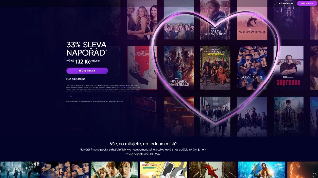 | HBO Max | 199 Kč | Ano, až 5 profilů pod jedním účtem | Ne | Více jak 13 000 hodin filmů a seriálů | Ano | až 4K (dle kvality internetu), Dolby Atmos |