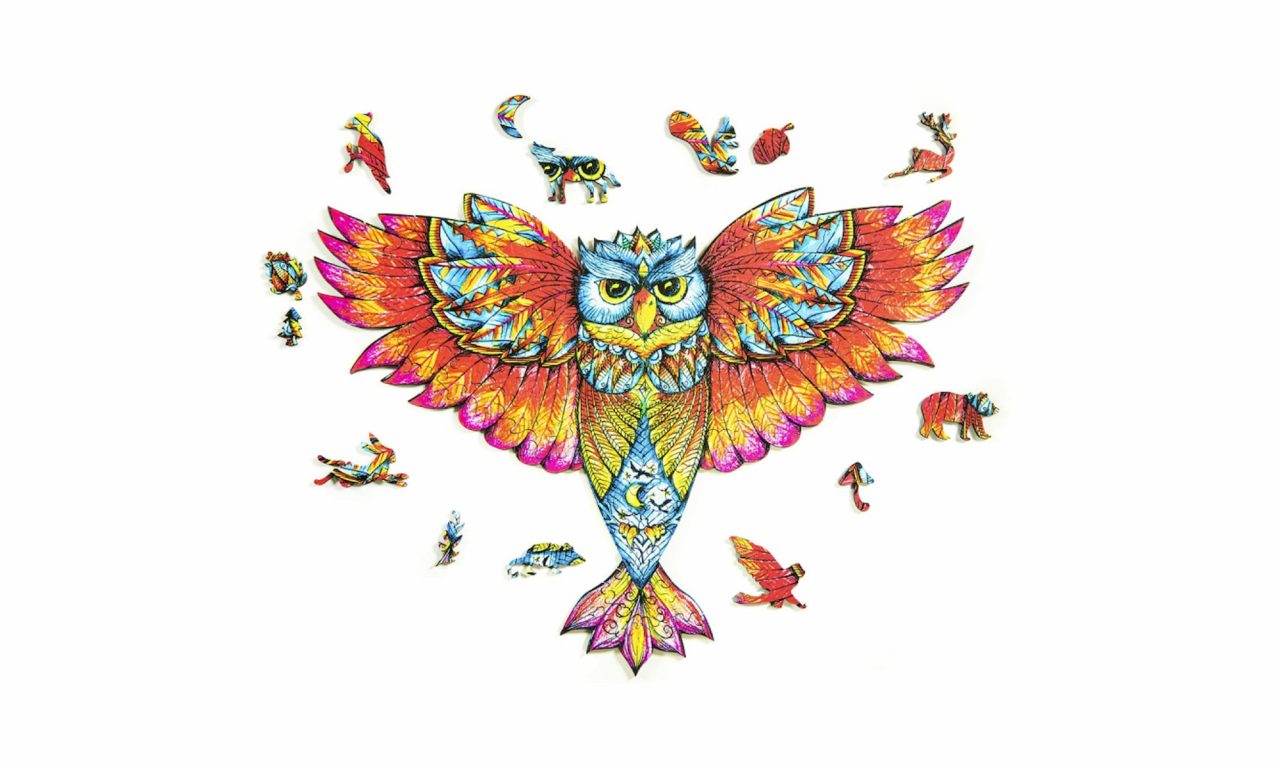 Zapomeňte na klasické puzzle a vyzkoušejte dřevěné. Výsledný obraz se za asistence elegantního dřeva promění v umělecké dílo. Ahome Originální dřevěné puzzle Sova se skládají ze 130 dílků. Každý z nich je jedinečný a unikátně tvarovaný. Rozměry puzzle jsou 40 cm na výšku a 30 cm na šířku.