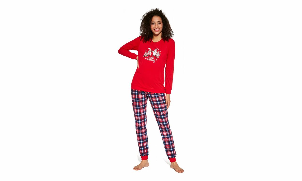 Co by to bylo za Vánoce bez tematického pyžama. Cornette 671/279 Gnomes kombinuje kalhoty a tričko s dlouhým rukávem. Kalhoty disponují pohodlnou gumou a jejich nohavice jsou ukončeny do pružného úpletu. Podobně jsou zakončené i rukávy trička. Triko přichází v červené barvě a pobaví vánočním motivem skřítků.