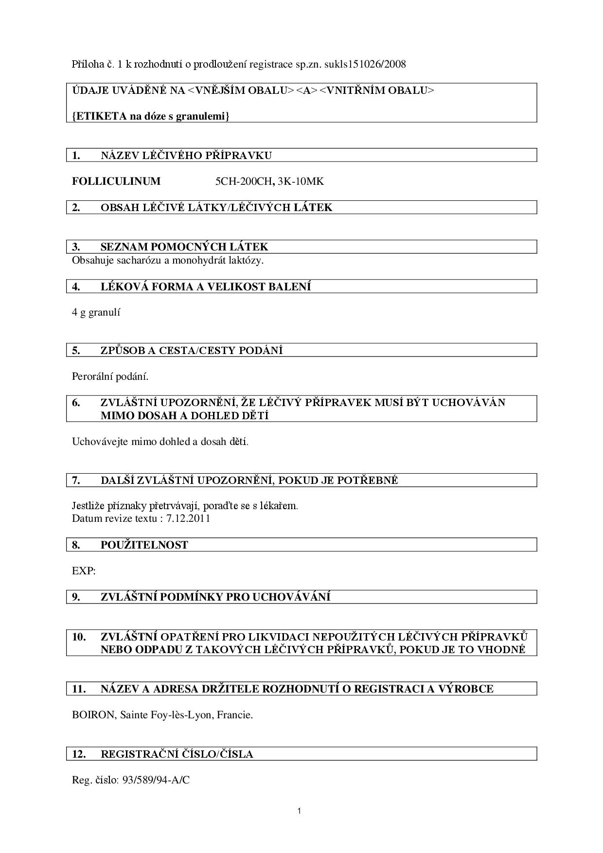 Boiron Folliculinum 15CH 4 g
