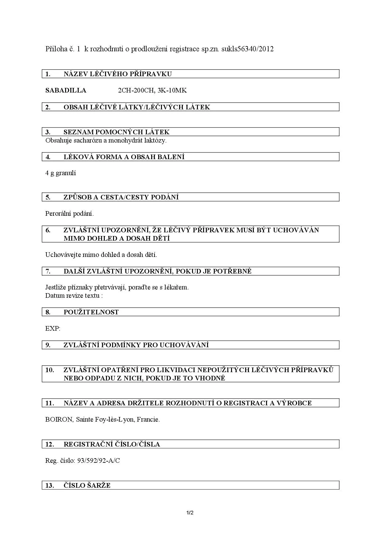 Boiron Sabadilla 5CH 4 g