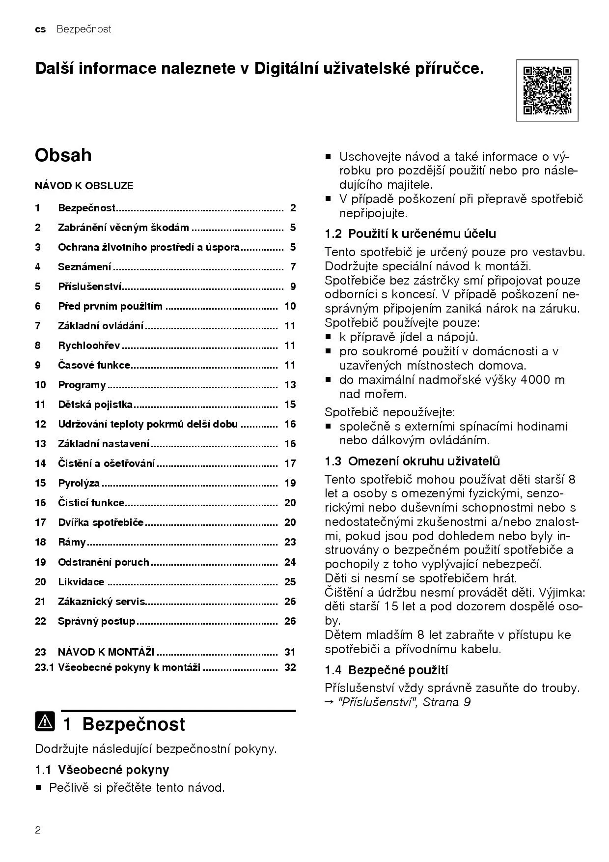 Návod k obsluze a pokyny k instalaci