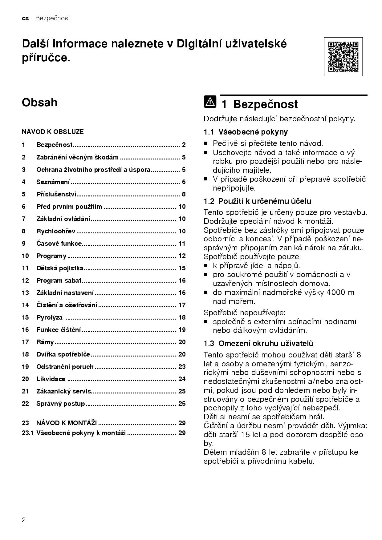 Návod k obsluze a pokyny k instalaci