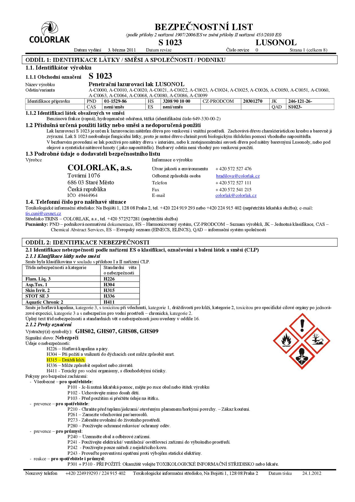 bezpečnostní list
