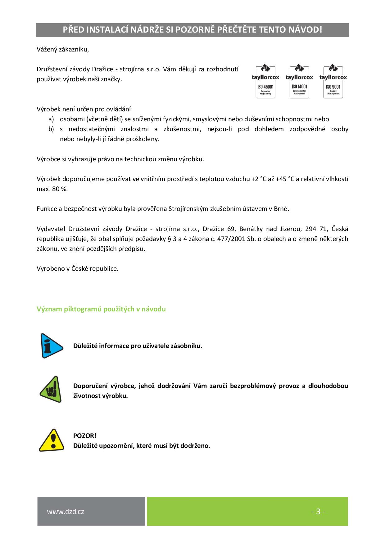 Návod k obsluze a instalaci
