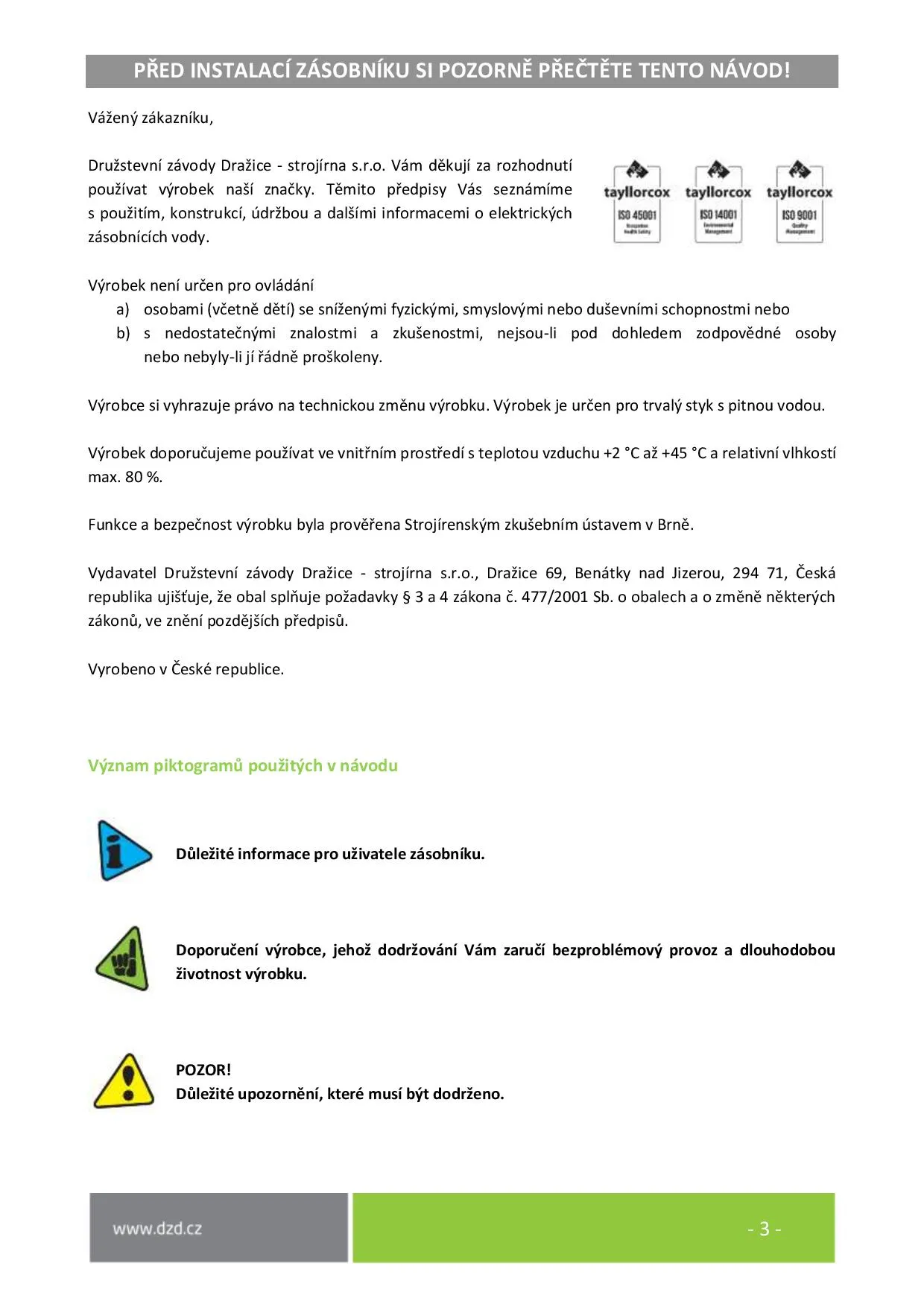 Návod k obsluze a instalaci