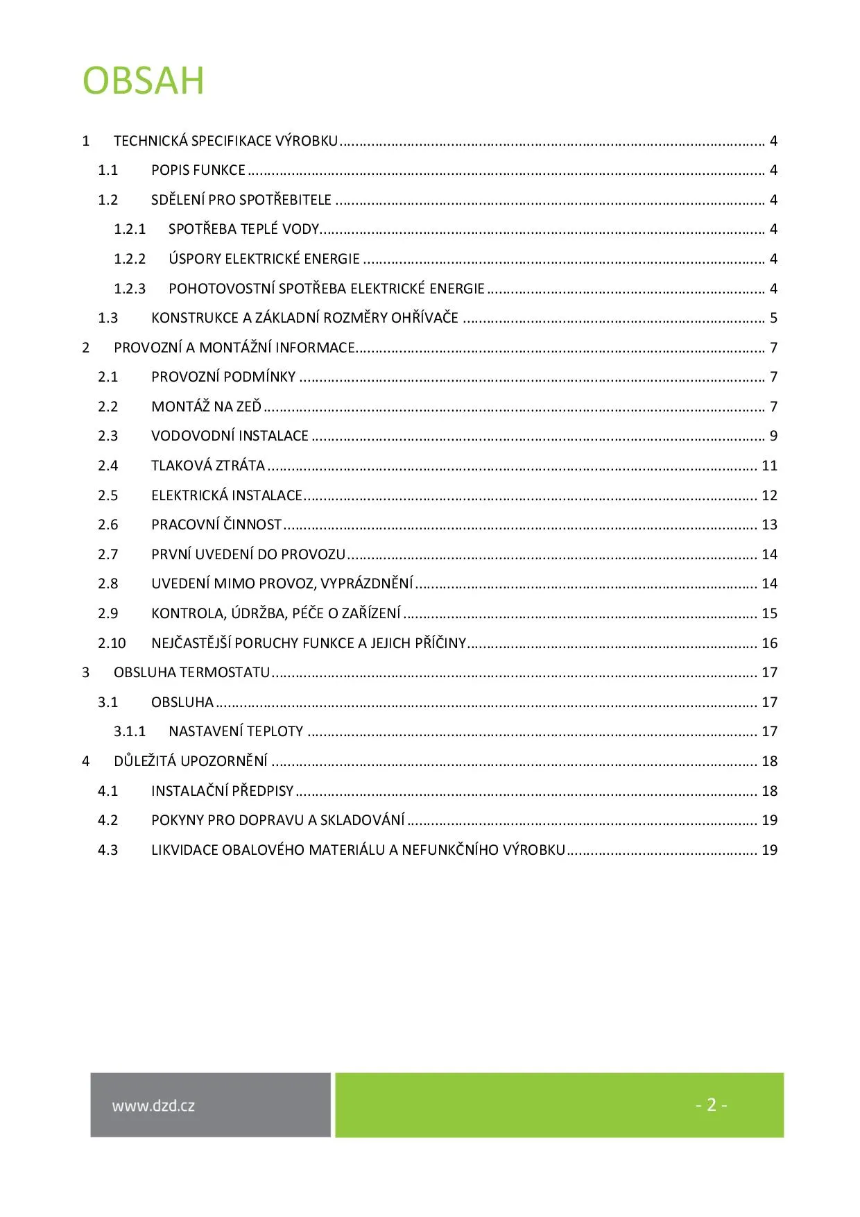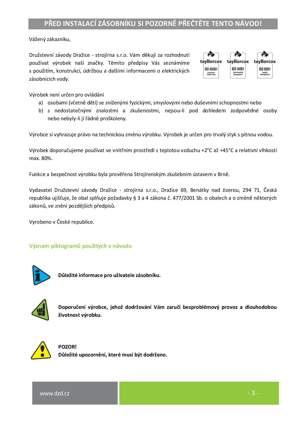 Návod k obsluze a instalaci