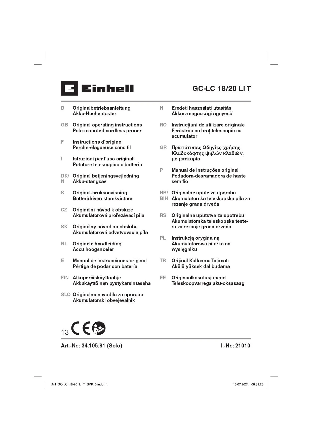 Einhell GC-LC 18/20 Li T-Solo