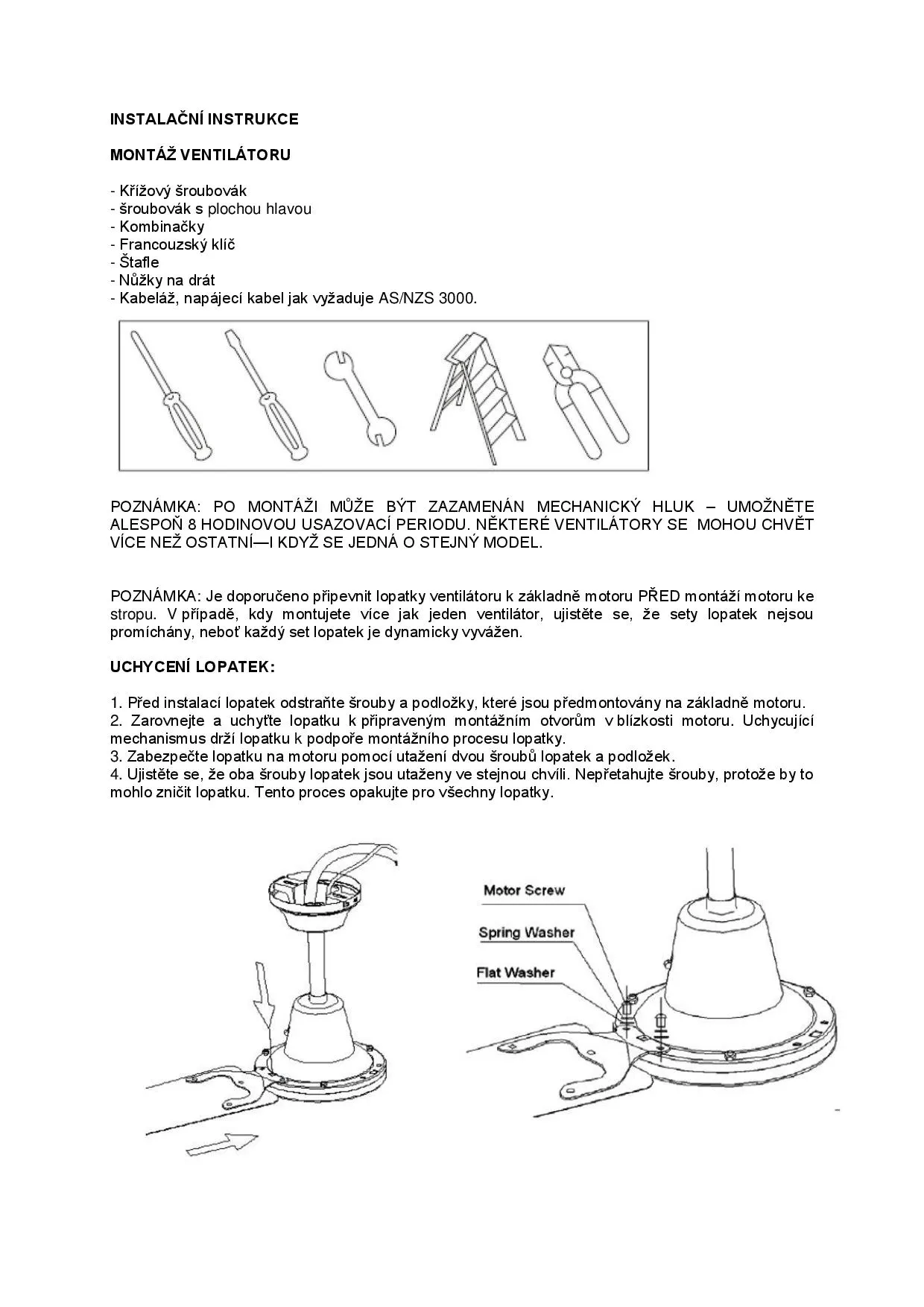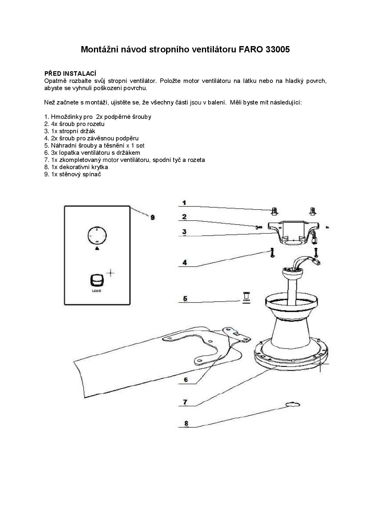 montážní návod