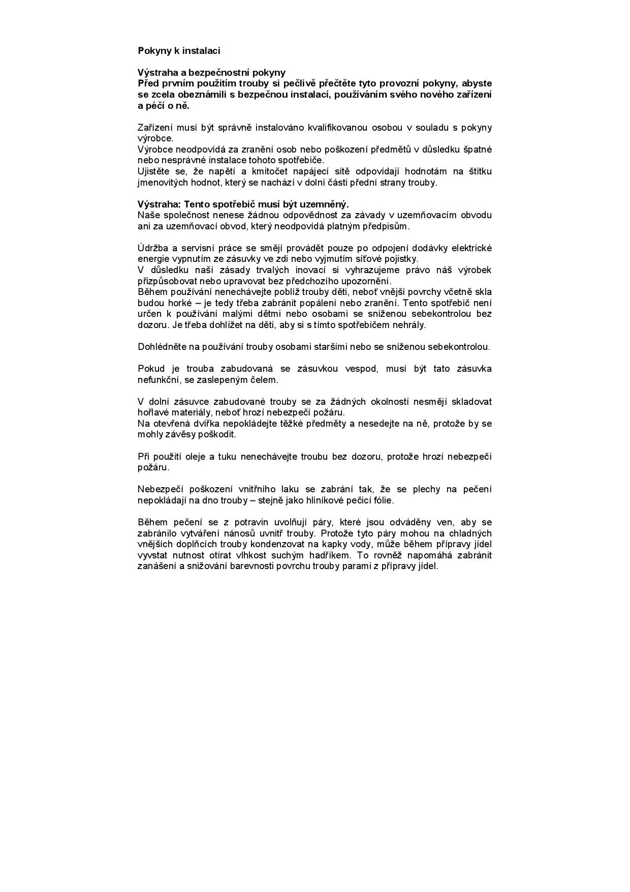 Pokyny k instalaci
