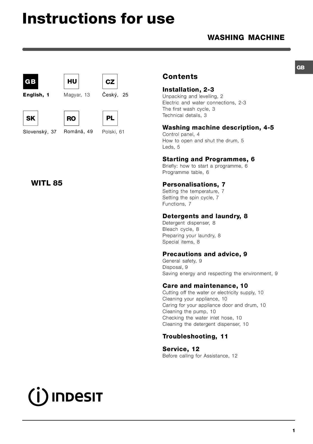 Indesit WITL 85 EU