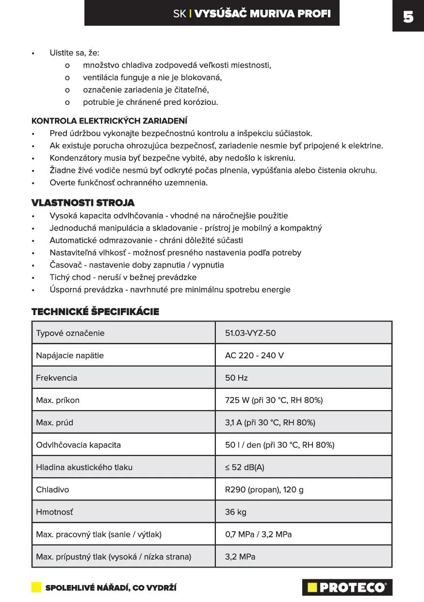 PROTECO 51.03-VYZ-50 průmyslový odvlhčovač vzduchu, 50 l / den, 725 W