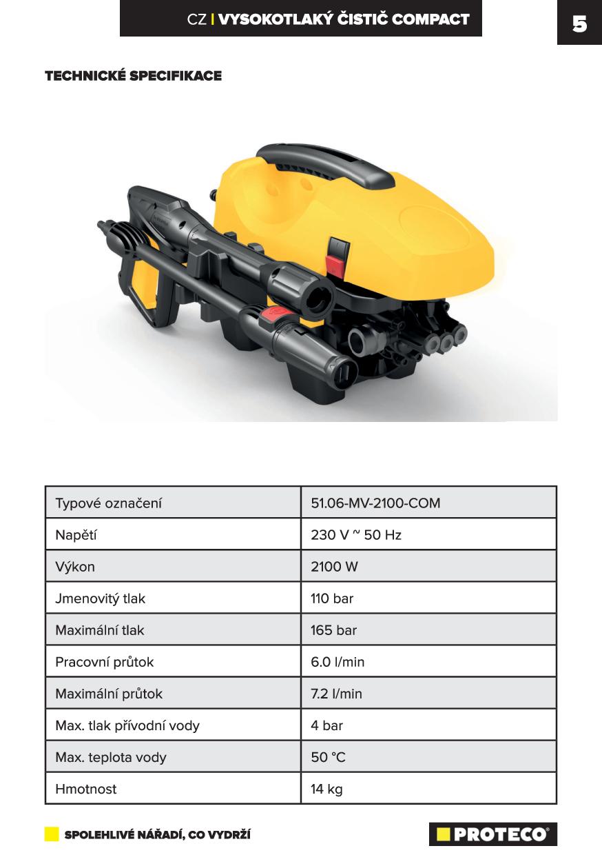 PROTECO 51.06-MV-2100-COM Vysokotlaký čistič COMPACT 2100 W, max. tlak 165 bar