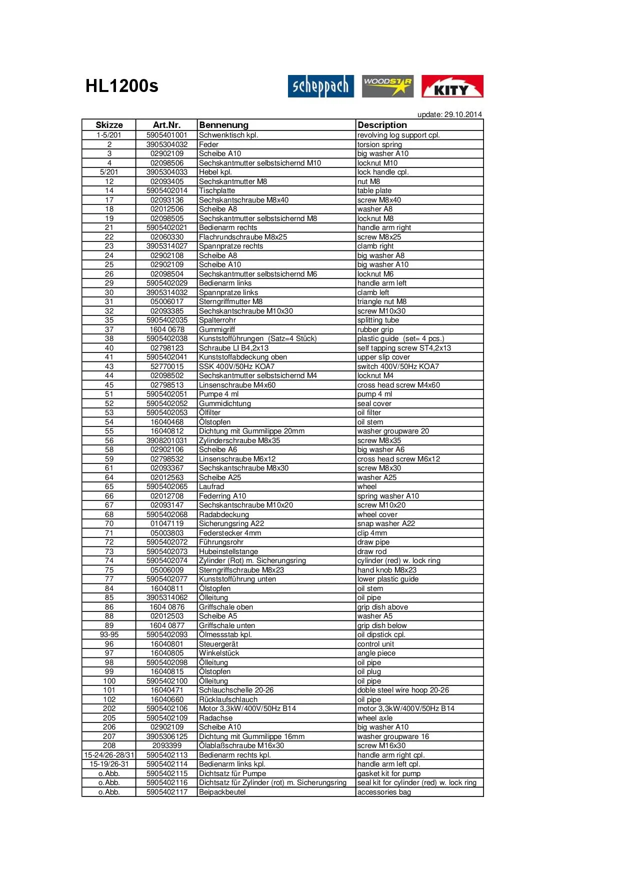 Plánek součástí stroje - Scheppach HL 1200s