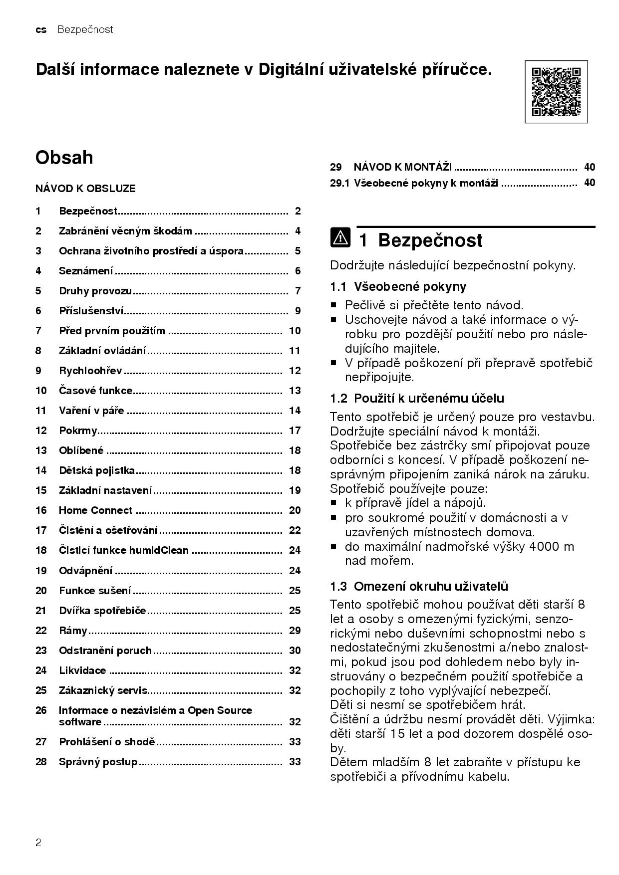 Návod k obsluze a pokyny k instalaci