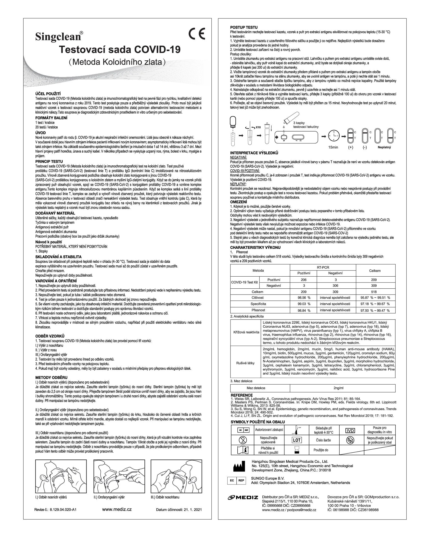 Singclean COVID-19 Antigen Test Kit z nosu 20 ks