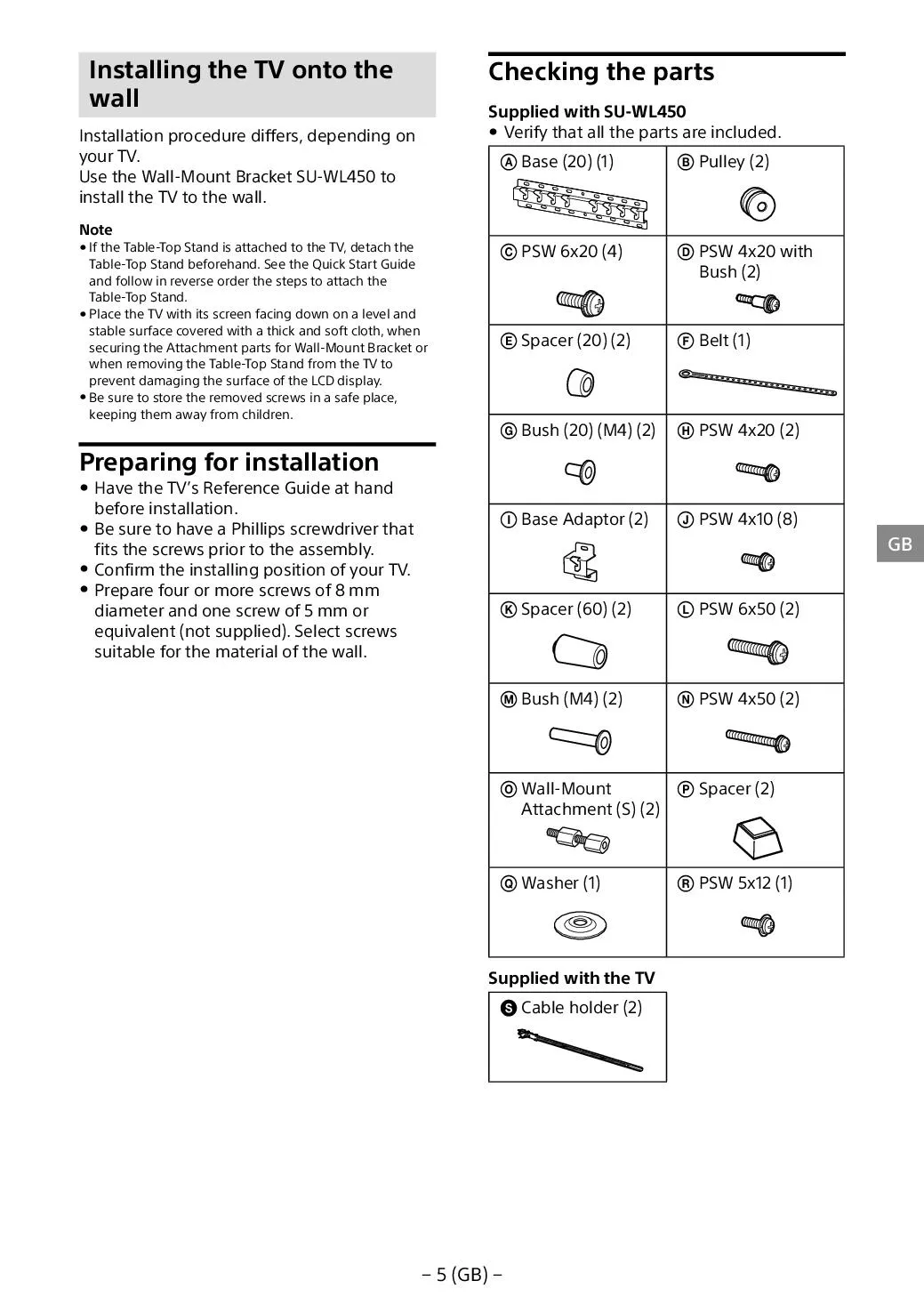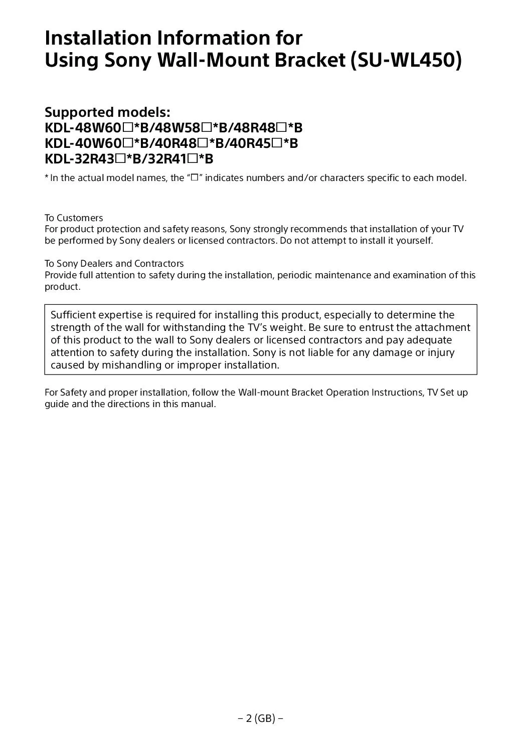 Informace o montáži nástěnného držáku