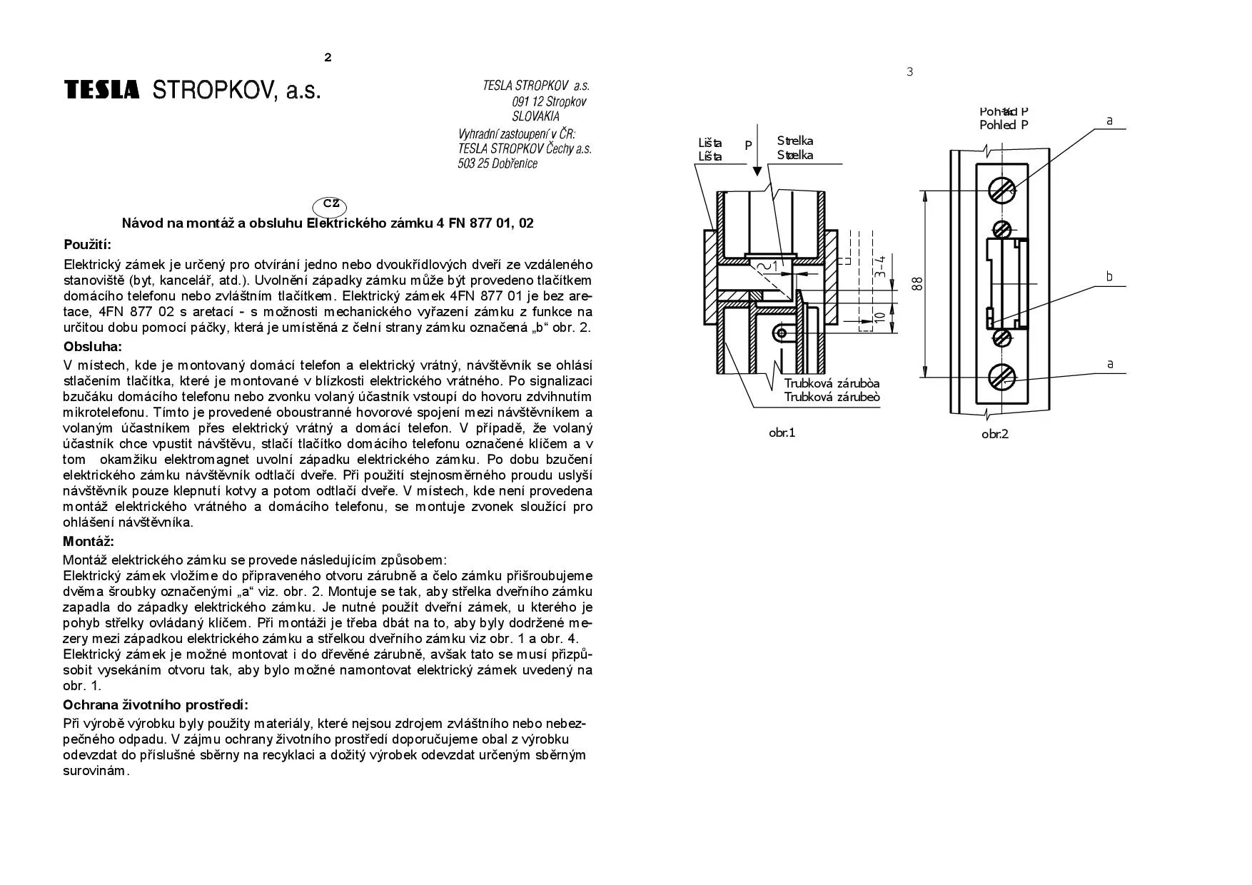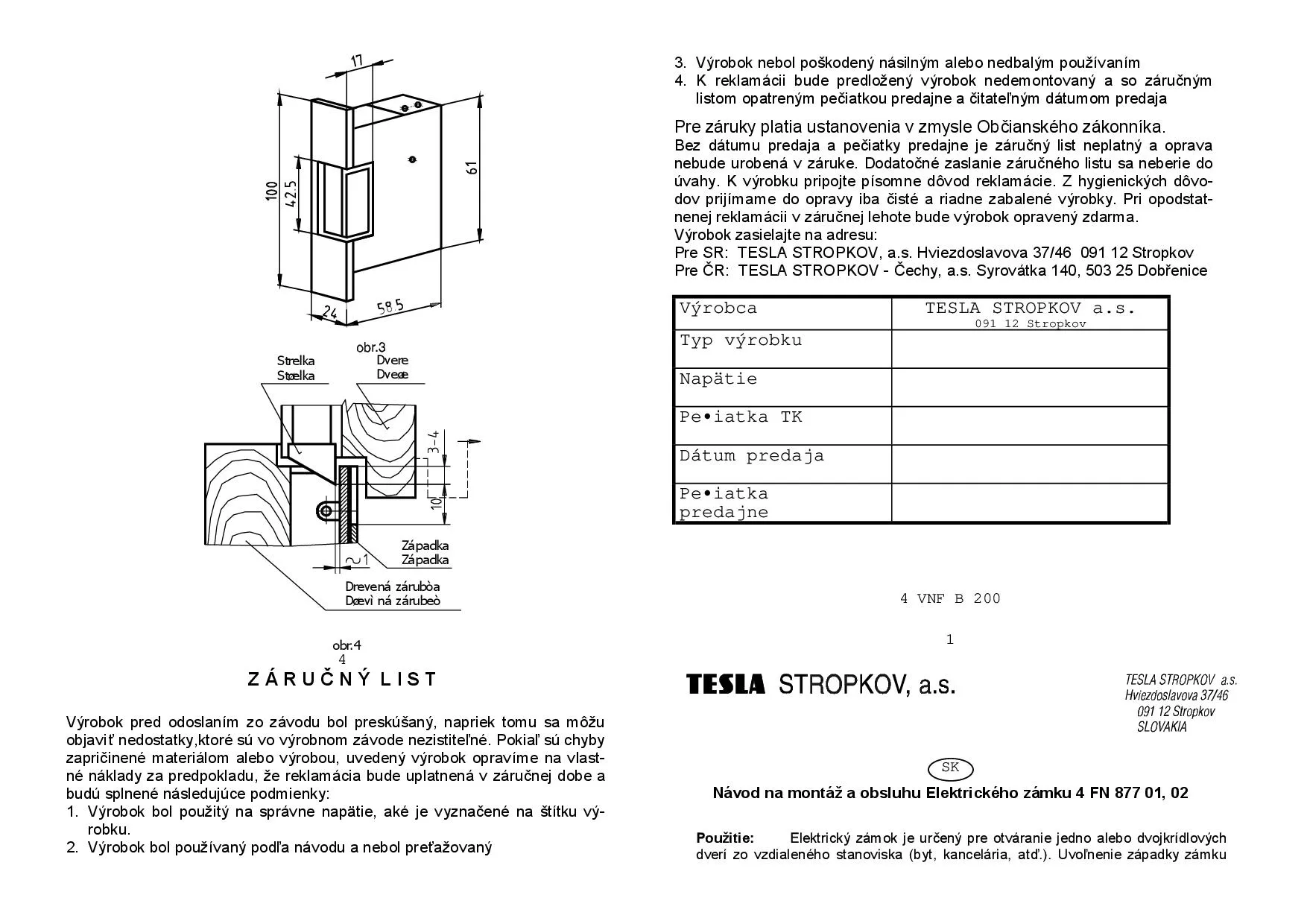 TESLA zámek elektrický s aretací