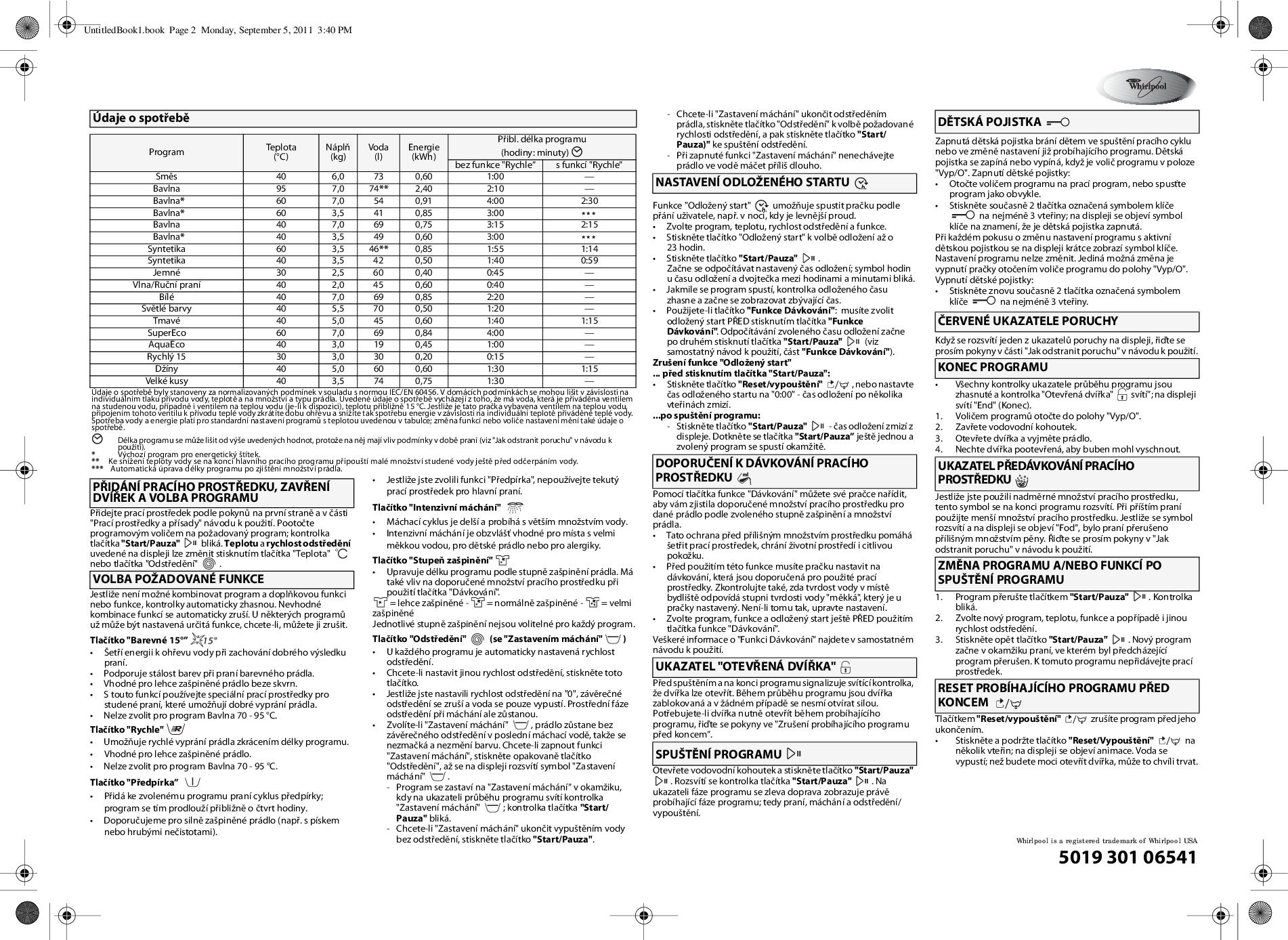 tabulka programů