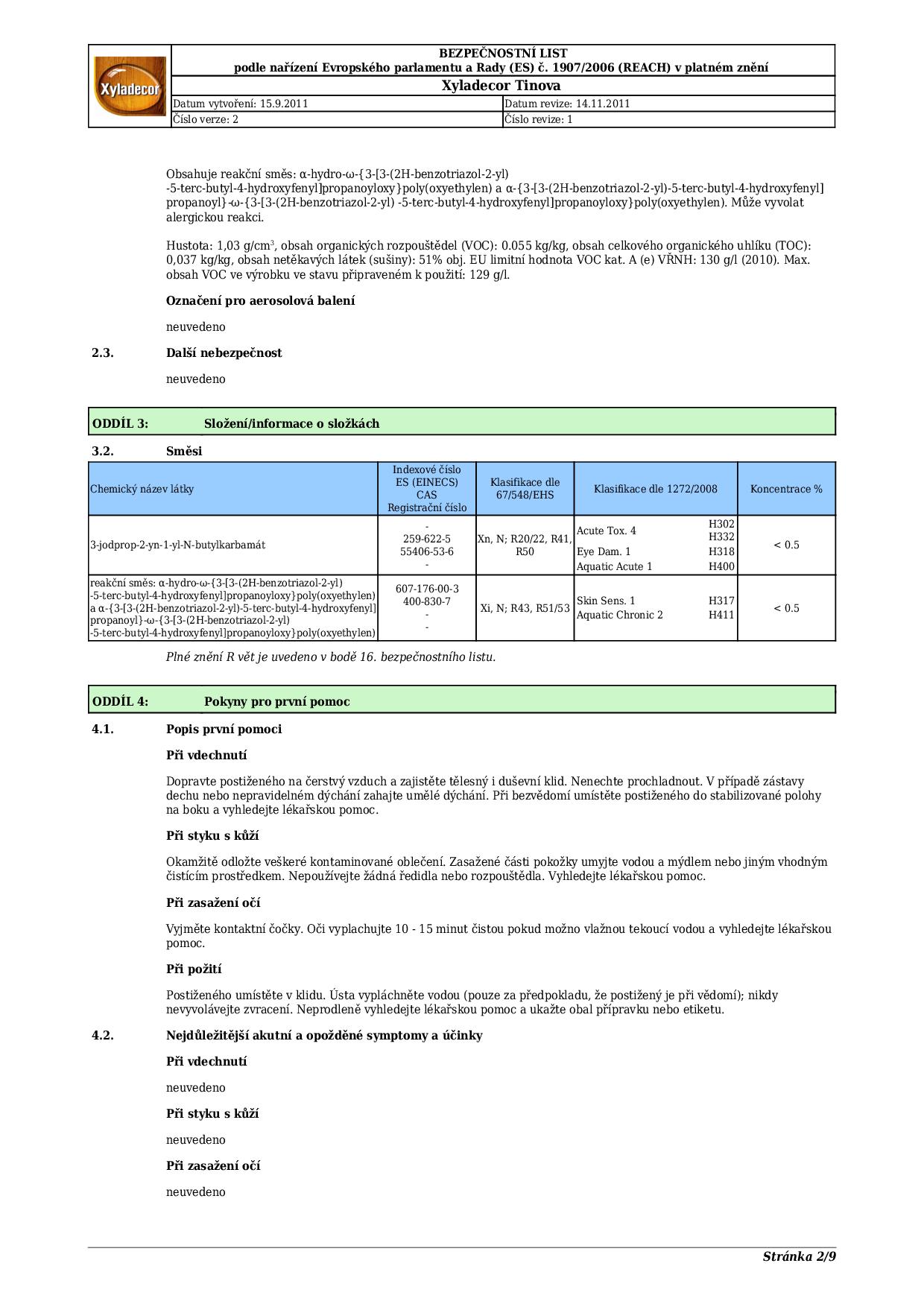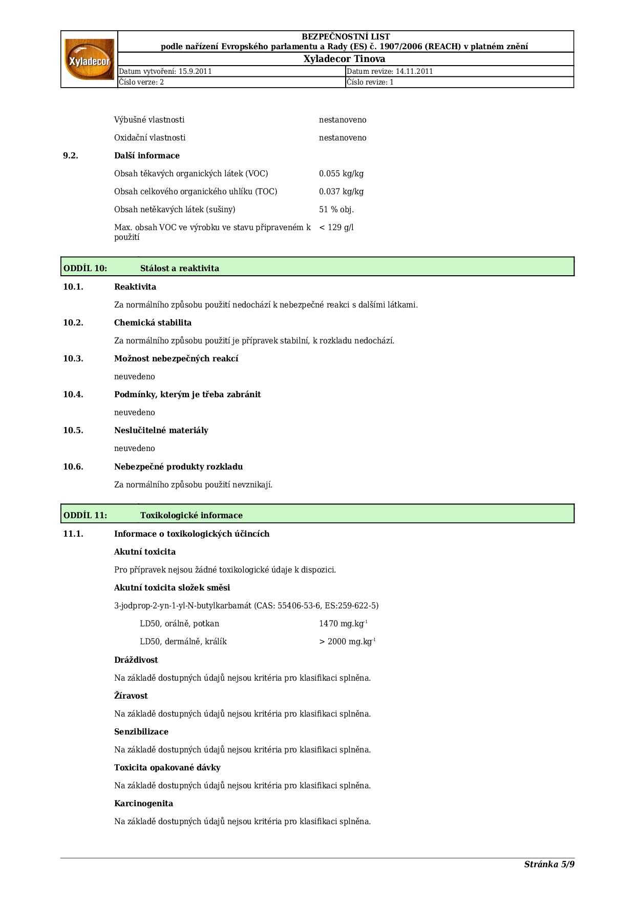 Technický list